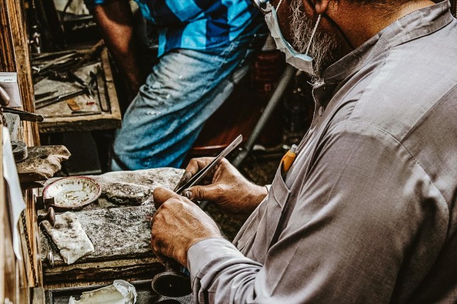 Ali, a old Pakistani man who works on gold repairs for almost 14 years .