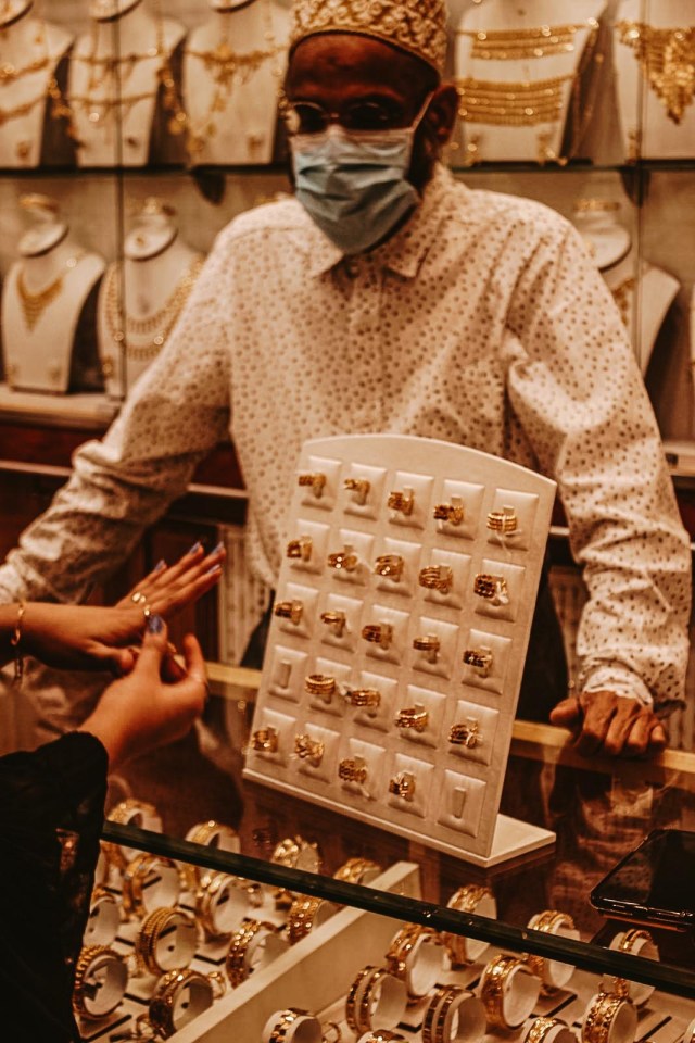 Mohamed 6 years in the business of gold selling , showed us some of the gold pieces that he had in the store , tried the best sellers of gold rings .